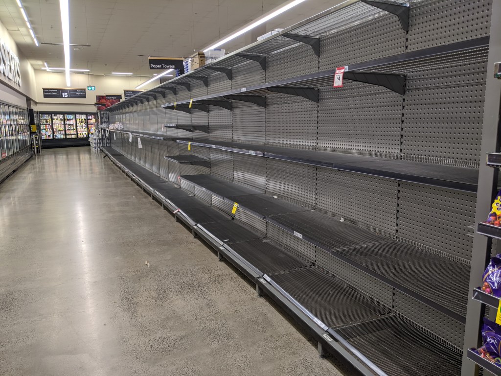 Suddenly, the shelves were empty. There was no pasta, no canned vegetables, no long-life milk. There was no rice, no bread, no peanut butter. The butchers had lines wrapped around the block and were sold out by midday. A pallet of cleaning supplies or hand sanitizer or that currency of toilet paper would arrive and the employees would just wait in a corner, handing out every last item in under ten minutes. It felt like the stories of modern Venezuela, or of East Germany in the 80s.